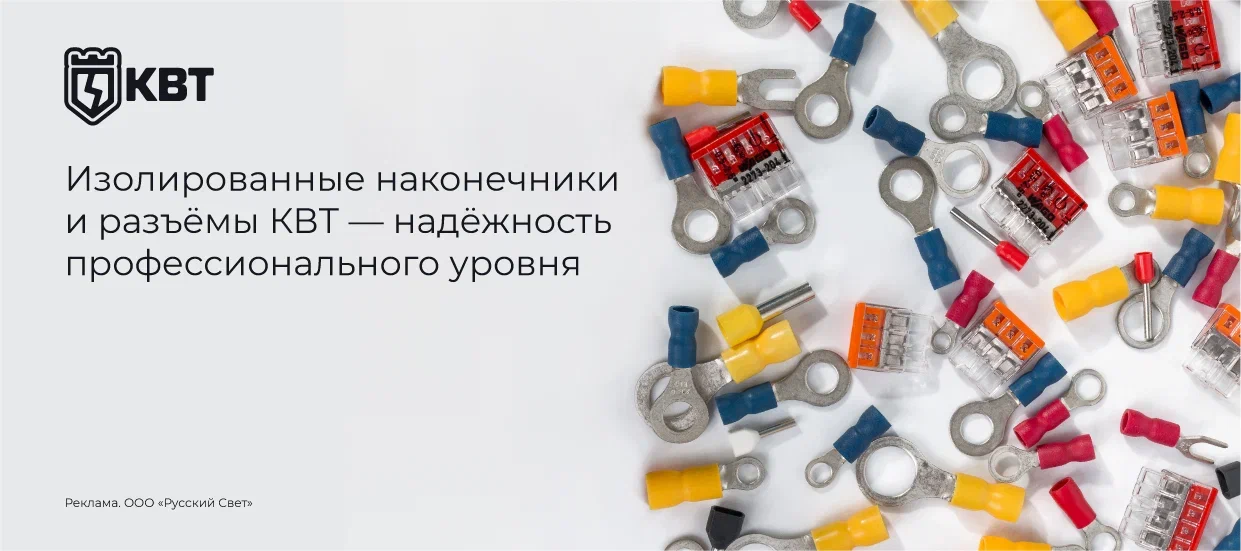 Производитель «КВТ» представляет широкую серию изолированных наконечников, гильз, разъёмов и зажимов КВТ, созданных для профессионального электромонтажа. Продукция отличается высоким качеством исполнения, продуманной конструкцией и широким выбором типоразмеров. Изделия серии «ПРОФИ» изготовлены из меди марки М1 с олово-висмутовым покрытием. Изделия серия «EasyFix» изготовлены латунь марки Л63.