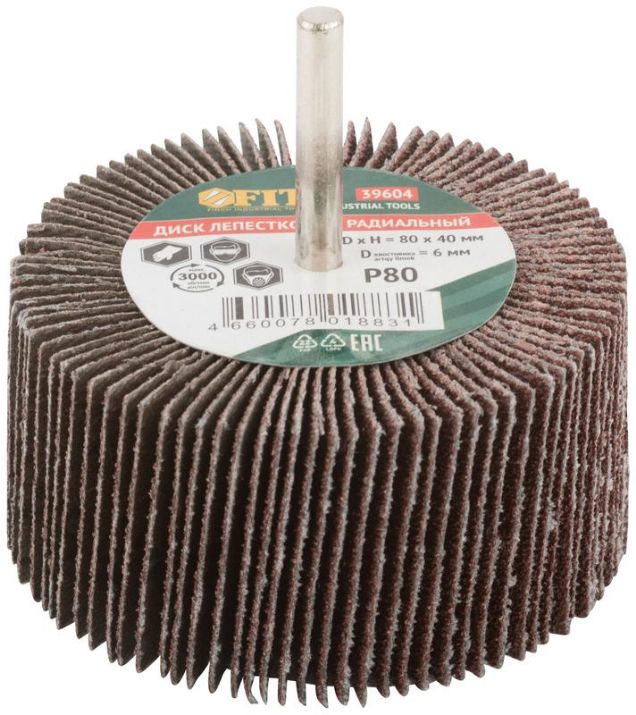 Диск лепестковый для дрели радиальный 80х40х6мм Р 80 FIT 39604