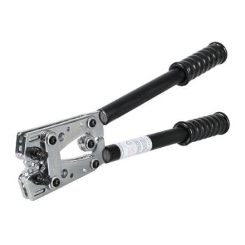 • Предназначены для опрессовки медных неизолированных трубчатых наконечников • Диапазон сечений: • медные наконечники 6–50 мм2 • Встроенные матрицы револьверного типа • Ширина опрессовочного профиля: 5 мм • Гексагональный обжим • Быстрая перенастройка на нужный размер • Для вращения матриц необходимо отжать до упора подпружиненные штифтовые фиксаторы. После отпускания штифта револьверная матрица самофиксируется • Корпус из 5-миллиметровой стали • Обработка поверхности: хромирование • Вес: 1.50 кг • Длина: 390 мм